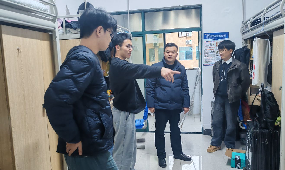 走访过程中,老师们与同学们亲切交流,详细询问返校适应情况、新学期学习规划及课程预习进度,耐心解答大家在学业规划、专业发展等方面的困惑,鼓励同学们尽快调整状态,以饱满的热情投入到新学期的学习生活中。同时,走访人员还排查了寝室安全隐患,提醒同学们规范使用电器、保持宿舍通风,共同维护安全舒适的居住环境,并就春季传染病预防、心理健康调适等事宜与同学们深入沟通,号召同学们适当锻炼身体,保持积极心态。