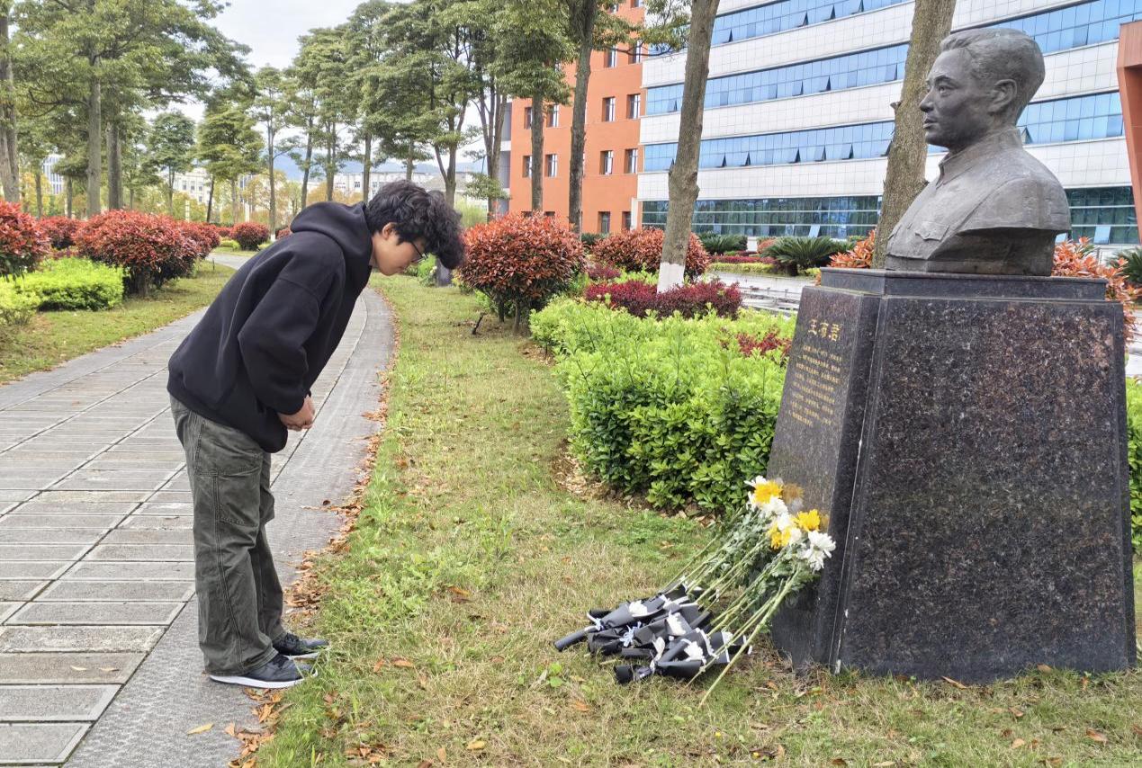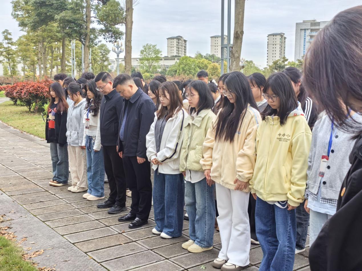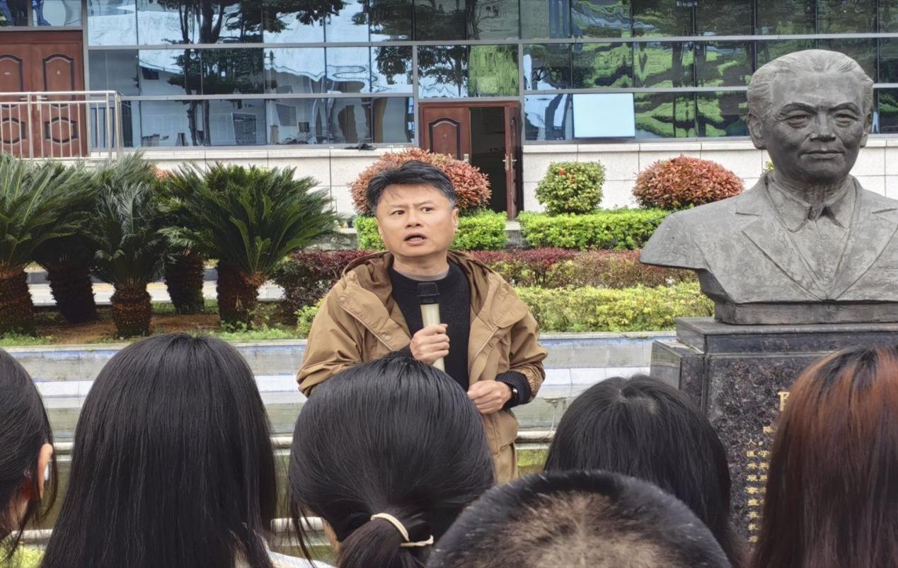 活动现场庄严肃穆,师生代表整齐列队,肃立于先贤纪念雕塑前。学院关工委副主任梁斯老师结合清明节文化与学校办学历史,在现场讲述了老董事长陈荣殿奋斗的感人事迹与卓越贡献。通过回顾先贤们筚路蓝缕的创业历程、严谨求实的治学态度、诲人不倦的师者风范和献身科学与教育事业的崇高精神,引导在场师生深刻感悟学院历史与文化底蕴,理解今日成就的来之不易。缅怀过程中,全体人员低头默哀,向先贤致以最崇高的敬意,以鲜花寄哀思,以行动表初心,深切缅怀先贤们的谆谆教诲与无私奉献。