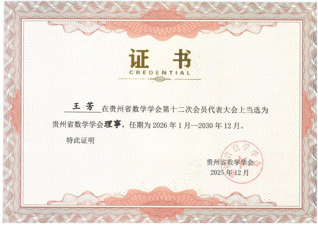 公司王芳老师当选贵州省数学学会第十二届理事会理事