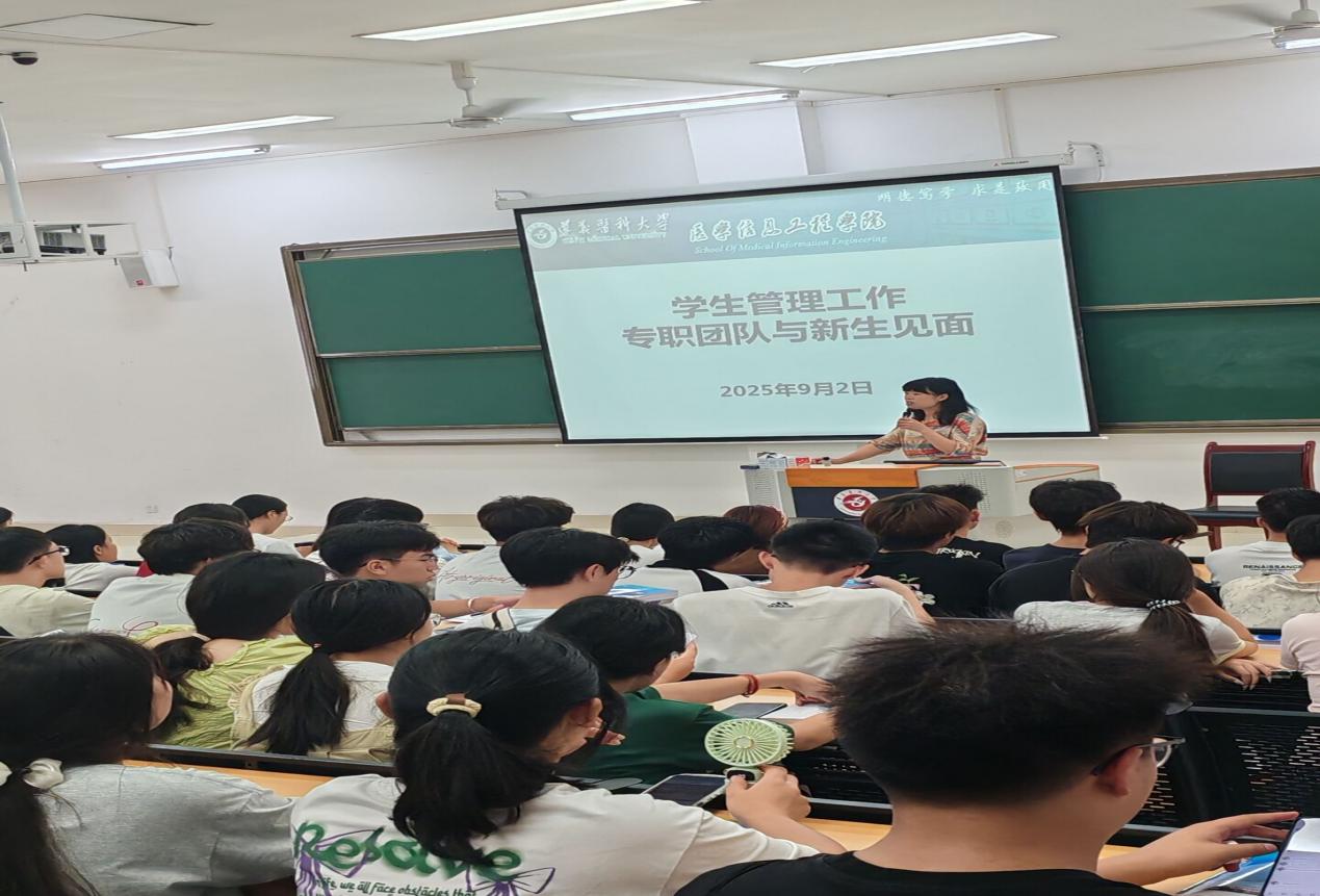 9月2日下午15点,学院在第四号教学楼34阶梯教室召开了“员工管理团队与新生见面会暨入学专题教育会”活动。首先,刘畅副书记寄语新生,强调同学们要树立远大志向,学会理论联系实际,做到知行合一;平时还要主动和老师、同学们交流,处理好人际关系,尽快适应老员工活;也教导大家要珍惜时光,积极参与活动,提升综合能力。以砥砺每位新生同学都能在这片沃土上茁壮成长,书写属于自己的精彩篇章。其次,杨夏老师进行员工管理工作团队相关事宜讲述,班主任曾位老师进行了新生寄语,冉姣老师进行校规校级教育。最后,熊宝锋老师进行了安全稳定意识形态教育和总结。本次活动切实拉近了学院领导、老师与新生同学们距离,进一步增进了同学们对学院的认同感与归属感。